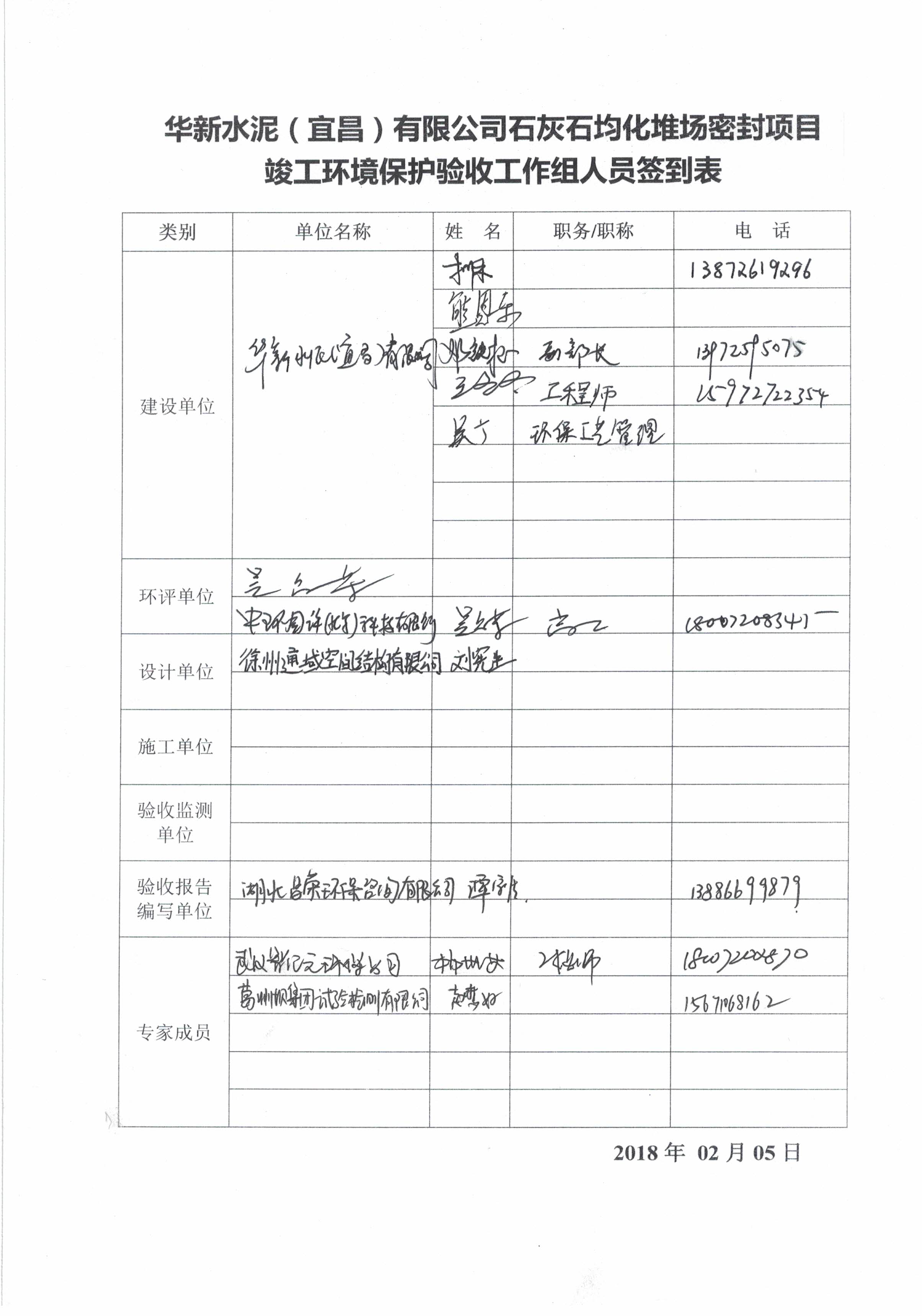 根据环境保护部国环规环评[2017]4号文件,关于发布《建设项目竣工环境保护验收暂行办法》的文件要求,华新水泥(宜昌)有限公司石灰石均化堆场密封项目已完成竣工环境保护验收,特公示本公司相关验收的具体信息(详见附件内容),接受公众的查询和监督。