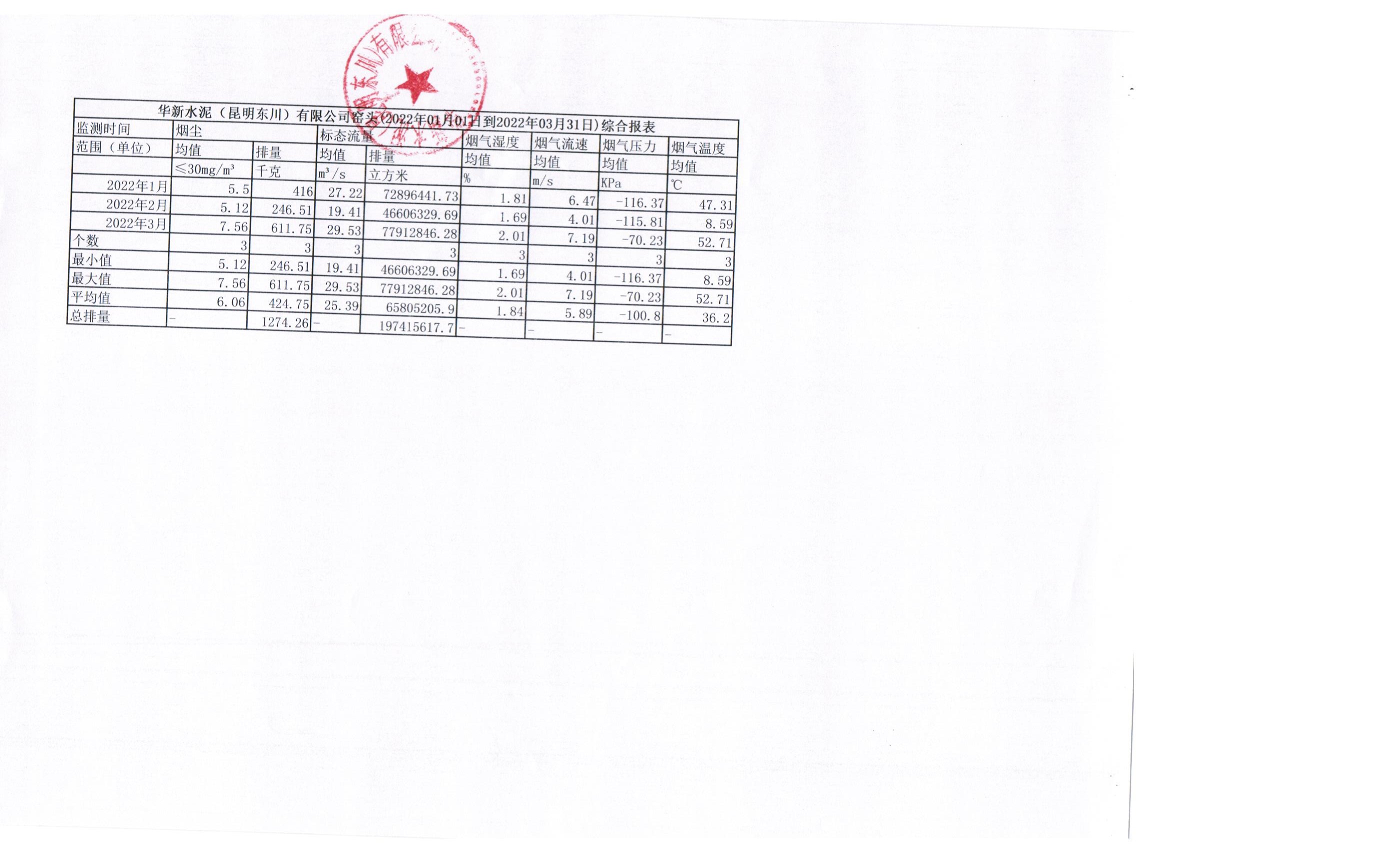 6、华新水泥(昆明东川)有限公司2022年第一季度环境自行委托监测