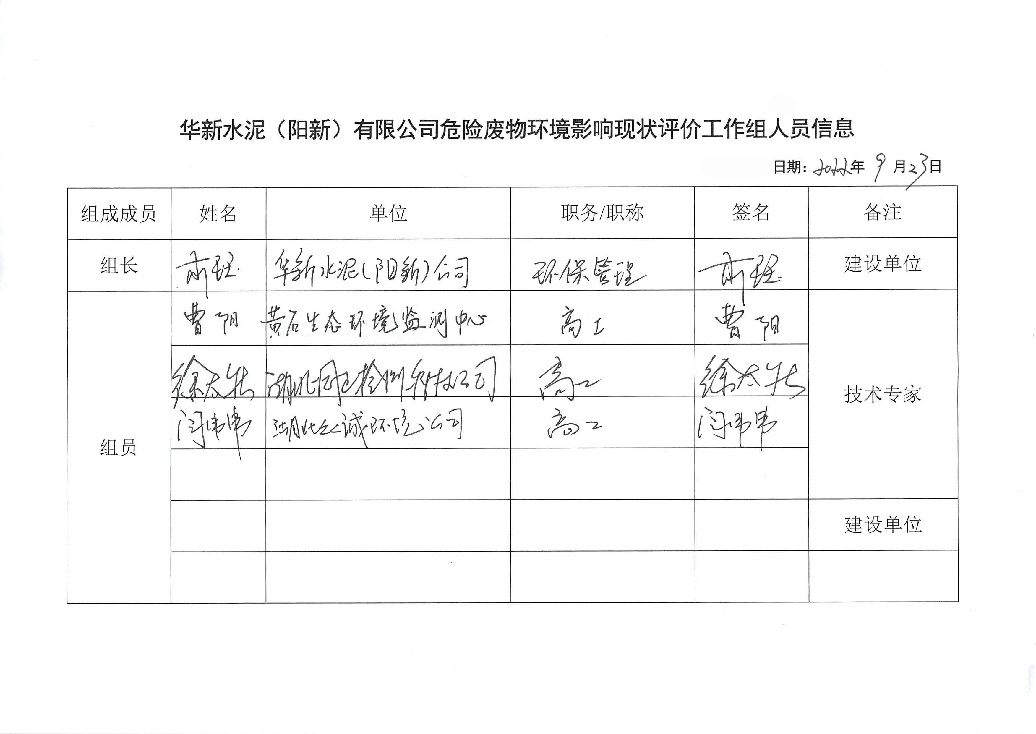 附件2:华新水泥(阳新)有限公司危险废物环境影响现状评价签到表
