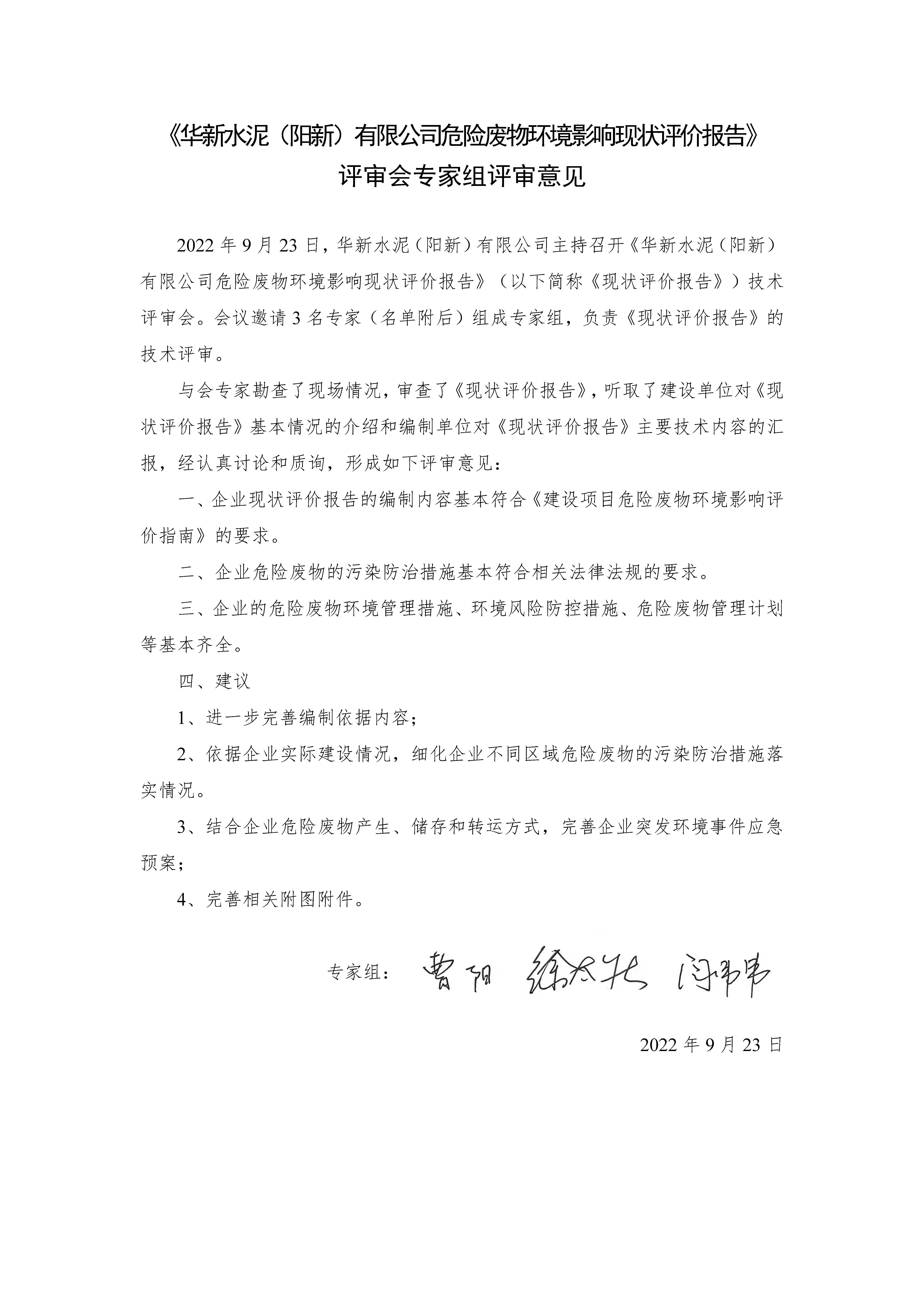 附件3:华新水泥(阳新)有限公司危险废物环境影响现状评价专家意见